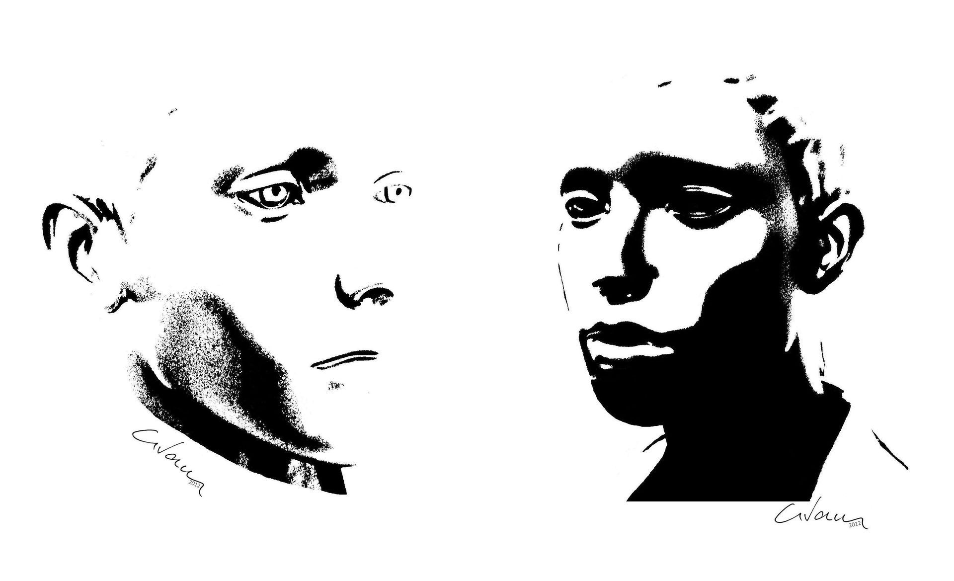 Bei dieser Art von „Kunstfotografie“ geht es ihm nicht um das realistische Aufzeigen des gewählten Motivs der jeweiligen Fotografie, die der Fotokunstarbeit zugrunde liegt, sondern um seine freie persönliche, künstlerische Interpretation einer möglichen anderen Sichtweise. Dabei nutzt er natürlich auch alle digitalen, modernen Bearbeitungsmöglichkeiten am PC. In der Regel geschieht dies, neben entsprechenden Bildvorbearbeitungen und wenn nötig auch Bildnachbearbeitungen, nach entstandener Fotografie, durch Segmentierung des Bildes mit Hilfe des Schwellenwertverfahrens. Dieses Verfahren orientiert sich an den vorhandenen Pixeln des Bildes. Durch ändern des Schwellenwertes entscheidet sich wo die Grauwerte, also die entsprechende Helligkeit, der einzelnen Pixel liegen, darüber oder darunter. So werden sie dann im Ergebnis entweder schwarz oder weiß dargestellt. Das Ergebnis zeigt dann, siehe die "Musikanten" (ehemals "La Musica") oben und die "Köpfe I & II" unten, eine sozusagen "fotografische" Schwarz-Weiß-Zeichnung.